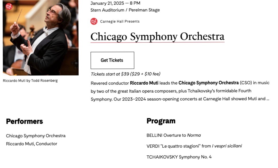 21日 リッカルドムーティ&シカゴ響@カーネギーホール チャイコ4番