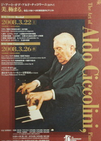 で、知らない曲を聴く。そのピアニズムは、美しい音色に包まれ、リストというと荒々しい激情型のピアノを思い浮かべるかもしれないが、そんな気配はまったくない。早いパッセージも早いだけで気持ちは走っていない。紡ぎだされる一音一音には知性とあふれる心がこもっていて、決してやっつけの音がない。技術を見せつけようとか、上手く聞かせてやろうというものもない。ただ、美しいのだ。これこそ、本来の青年の心ではないか。年齢を重ね余計なものが全部とれたものだけが到達できる頂点なのだ。 しかし、客席の多くは空いていた。それは、きっと僕と同じ理由だろう。 高校のときから名前は知っていてたまに来日もしていたのに行かなかった。なぜか、二本の東芝EMIが積極的に録音を出さなかったからだ。氏は山ほど録音していたのに、ギーゼギングやフランソワ、リパッティという何十年も前の録音にこだわって、1960年代に録音されたチッコリーニの録音を出さない。そうなると、日本では人気がでない。日本のクラシックコンサートは、先ずはいい録音がメジャーレーベルから発売されているかということがとても重要となるからだ。