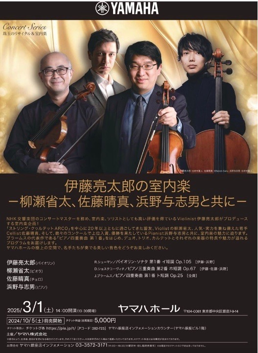 1日 伊藤亮太郎の室内楽 佐藤晴真 シューマンVS1 タコP3重奏2 ブラP4重奏1