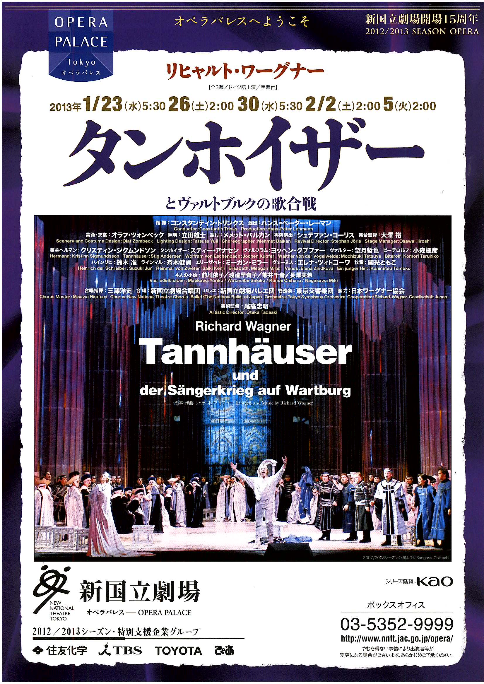 この再演のプロダクションは初演にはリンダワトソンやハンスチャマーといった超一流キャストを迎えての初演に比べるとどうなるかと思っていたが、先のワーグナー上演と比べると少し見劣りするがなかなかの水準であった。3幕の夕星の歌やローマ語りなども新国立劇場のちょうどいい大きさの劇場だからこそ、歌手陣はただ声を張り上げるだけでなく深い表現をする余裕がでるのが素晴らしい。ピットの東京交響楽団は重い音を出すというよりも現代的な美意識に彩られた演奏で、オーボエのソロなど見事というほかない。新国立劇場のレベルがどんどん上がるのは大変嬉しいことだ。