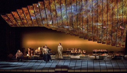 ロバートルパージュは光と影の魔術師といったフレーズで語られるいま注目の演出家である。シンプルな舞台で、今回は三角形の縦横無尽に稼働するオブジェに照明やビデオ撮影されたものを投影することによって瞬時にして場所を移していく。アイデアは面白い。しかし、ワーグナーのこの巨大なオペラには、アイデアがちょっと煩かった。特にこのようなモダンな演出をするのなら、美術やセットだけでなく、衣装なども含めて徹底して欲しかった。衣装も演技も神話の世界そのままで、美術だけがモダンなのである。