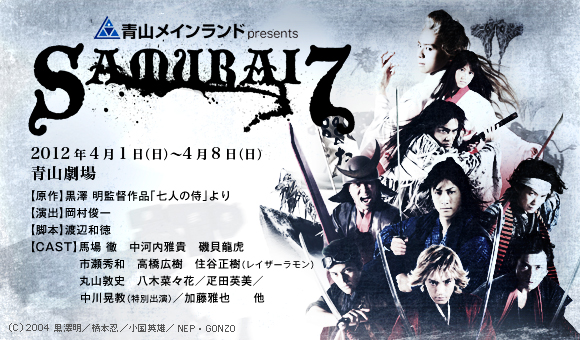 渡辺和徳の描く「サムライ7」は黒澤作品などとは全く関係なく、時代は入り乱れ、いい意味で何でもありの作品で、まるで新感線を感じさせるようなテンポである。映像の人だと思った、いや大根役者だと思っていた、加藤雅也がスゴくいい役で芝居も旨い。看板を張れる役者勢揃いの舞台でも、事実上の主役。が、加藤さんオーラがあるから説得力がある。若くてイケメンでアクションもできる面々と違う次元で存在している感じがあった。2012年4月3日@青山劇場