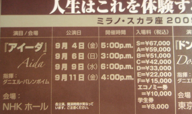 今回は「アイーダ」と「ドンカルロ」。チケット代は最高が67000円。高いなあ。それでも行ってしまうのかから仕方がない。