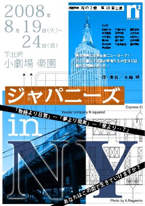 前回公演がきちんと美術セットを組んでの公演だったのに対し、今回はホントに素舞台でほとんどなにも美術がない形での公演だった。夢、恋愛、エイズ、ドラッグ、ブロードウェイ…。ニューヨークでイメージする多くのアイコンを随所にちりばめた青春物語だった。こうした観客の期待を裏切らないこと。さらに、登場するアイコンに関してもきちんと説明して行くところ。長峰朗氏の手堅さを実感させる公演だった。出演者では、田村通隆がステレオタイプのアキバ系というちょっと間違うと本当にヤバいキャラ芝居をやり通したこと。大勝みゆき、五来英顕、屋良夏美、関口剛らが誠実に舞台に対峙していたのが好感。